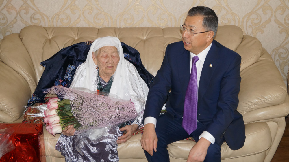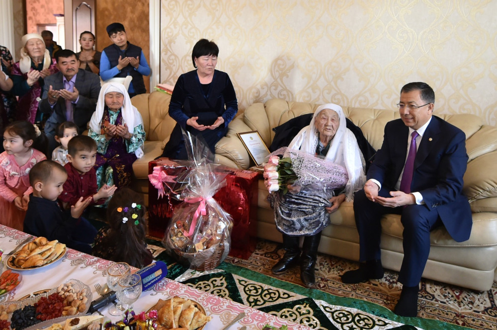 Поздравив Назым-апай с наступающим праздником, Жансеит Туймебаев пожелал долгожительнице здоровья и семейного благополучия.