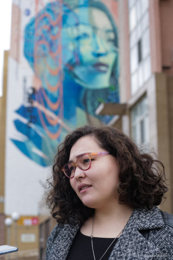 "Всё согласовано через городской акимат, а также непосредственно с жителями дома. Без согласия жителей мы не рисуем на стенах, через чат они одобрили эскиз рисунка", — говорит Алтынай.