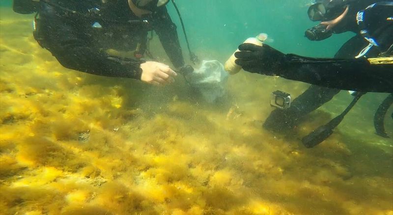 Очистили мусор, лежащий на глубине 10-15 метров под водой. Водолазы взяли с собой мешки для мусора под воду и очистили территорию в 250 квадратных метров. В прошлый раз при очистке морского дна было выброшено 10 мешков мусора, на этот раз их насчитали 12.