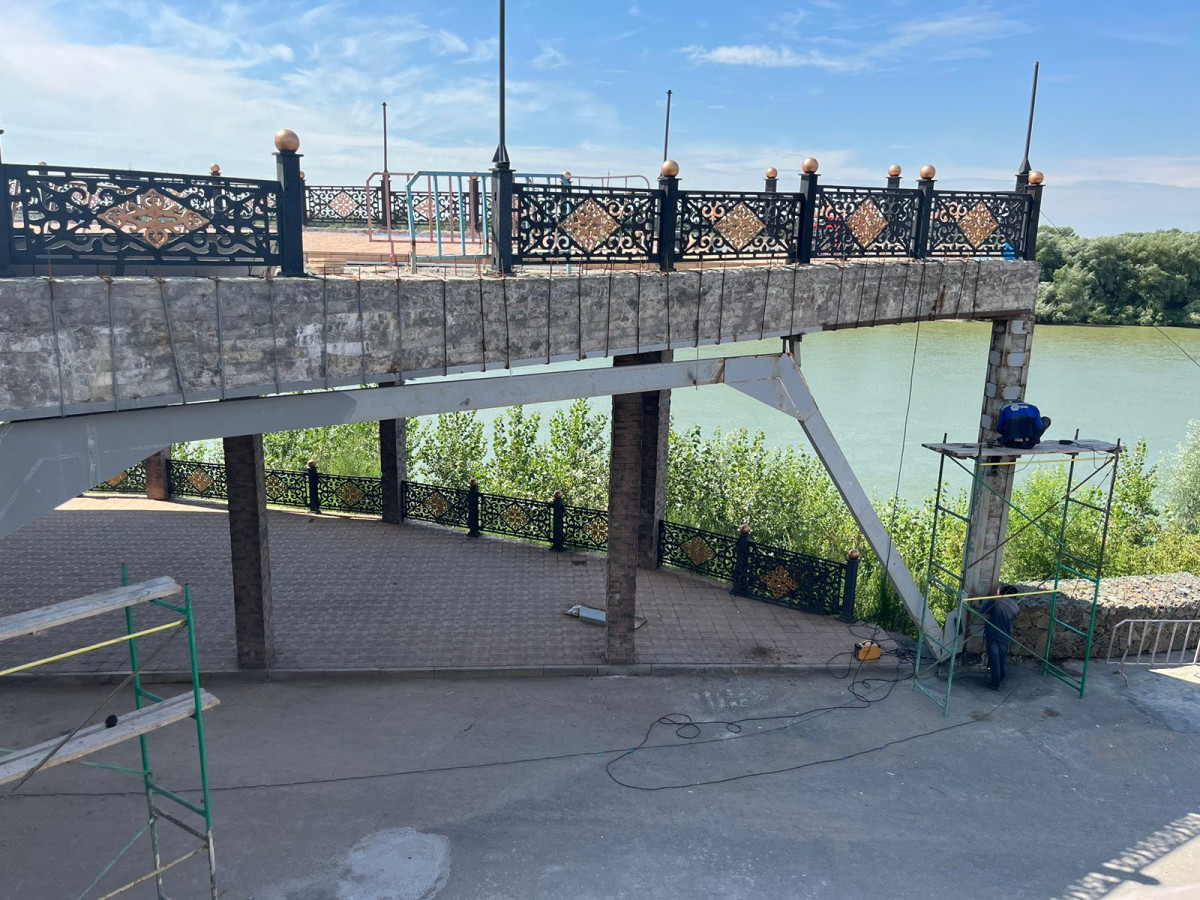 "Изначально авторы проекта дали свое заключение, техническое решение, как это делать. Когда мы приступили, пригласили местных специалистов, совместно осмотрели, и было принято решение, что начинаем работу согласно проекту, но если будут какие-то отклонения, будем вносить изменения совместно с заказчиком, с авторами. Основные металлоконструкции уже приготовлены, идёт благоустройство. На верхнем этаже укладывают новую брусчатку. На данный момент угроза снята, потому что усиление уже произведено. Специалисты приезжали, визуальный осмотр делали, "отстреляли" геодезисты, всё нормально", - пояснил руководитель проекта по реконструкции набережной Руслан Кендербаев.