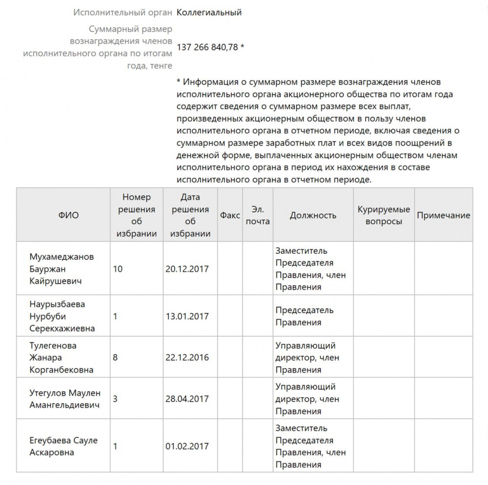137 266 840,78 тенге по итогам работы за 2018 год получили пять членов правления ЕНПФ, передает