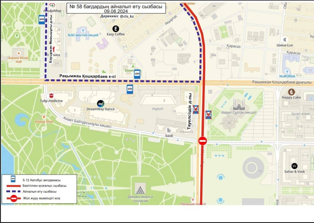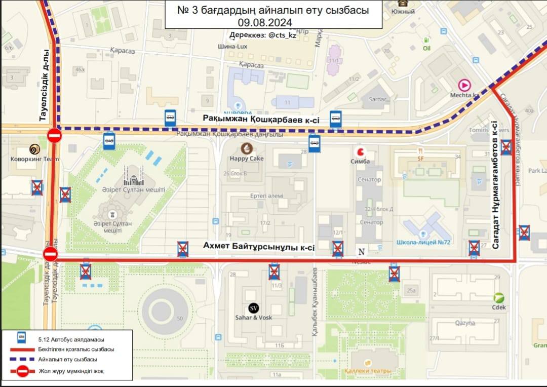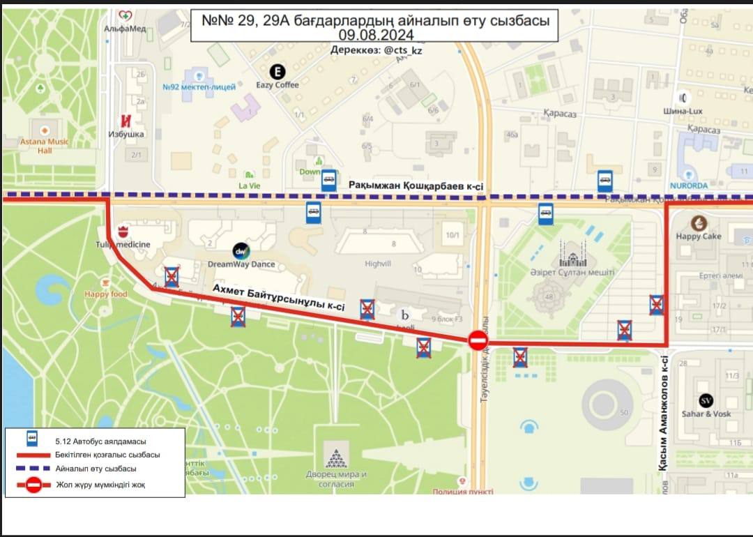 "Внедряется временное изменение движения маршрутов №№3, 4, 4А, 14, 19, 21, 29, 29А, 32, 40, 43, 50, 58, 66, 84, 202, 203", - сообщили в акимате города.
