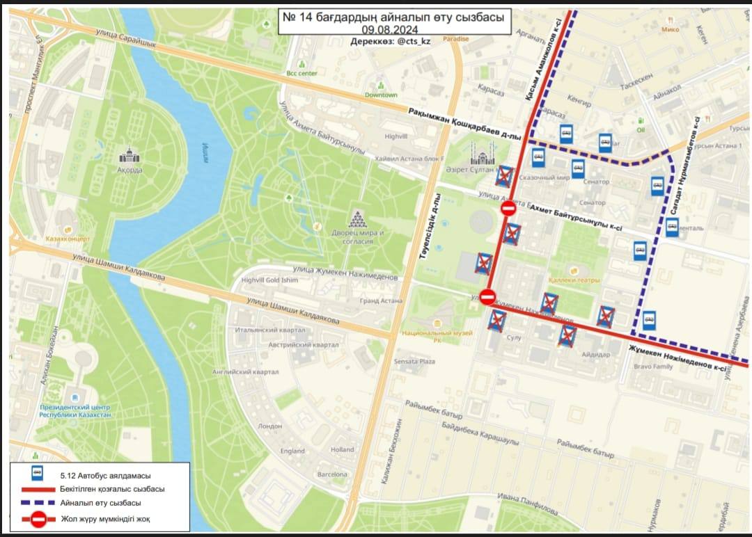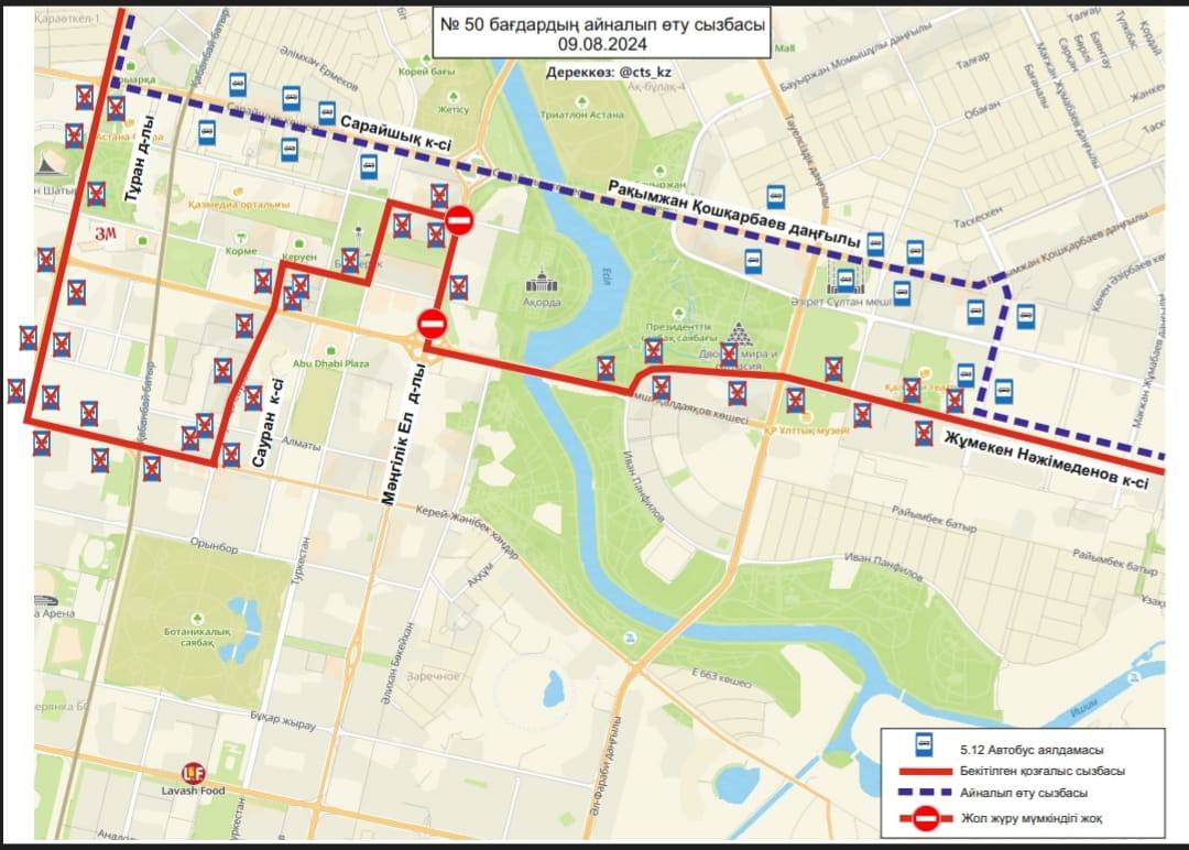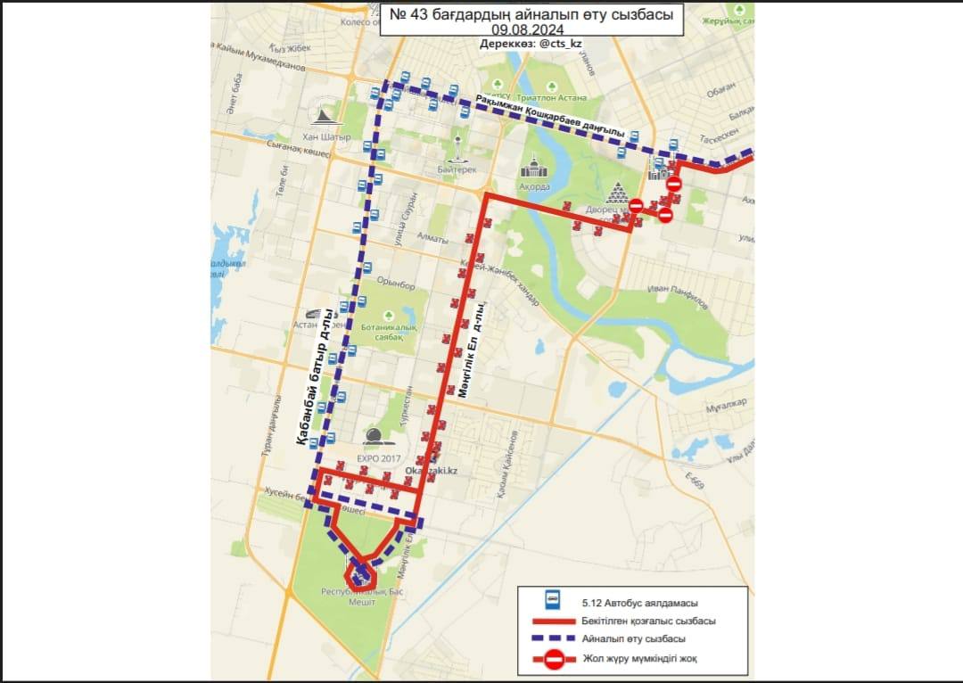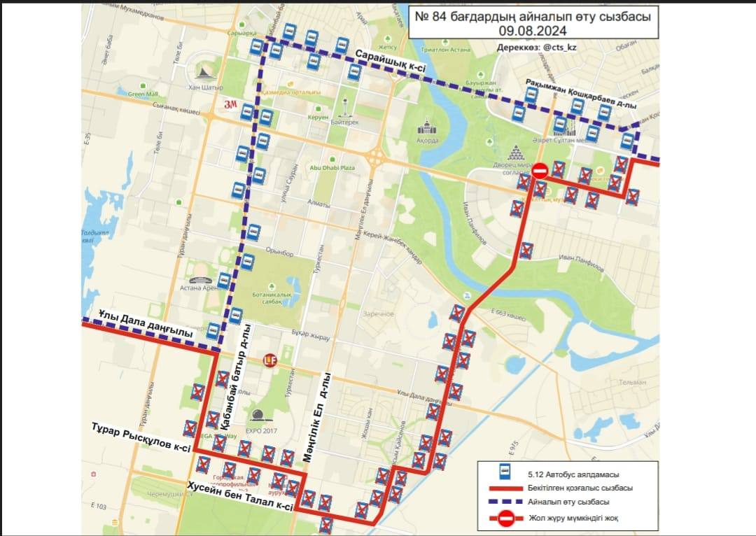 9 августа в связи с проведением в Астане первого саммита Диалога "Центральная Азия + Япония", а также 6-ой Консультативной встречи глав государств Центральной Азии, изменят схемы движения 17 автобусных маршрутов, передаёт BaigeNews.kz.