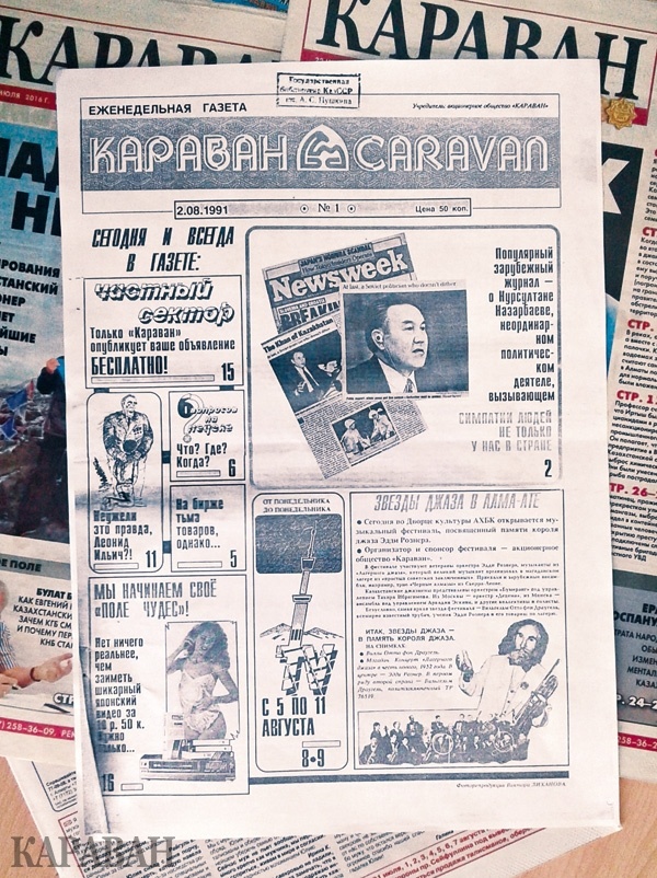 В том же году стартовал первый номер еженедельной газеты "Караван", появившийся в июле объемом в 16 страниц и тиражом 50 тысяч. Открыл ставшую мегапопулярной газету бизнесмен и продюсер Борис Гиллер, который решил делать бизнес в Казахстане на некогда "запретных" темах. Невероятно, но за короткий срок тираж газеты подскочил в пять раз, а само издание стало самым читаемым в республике!