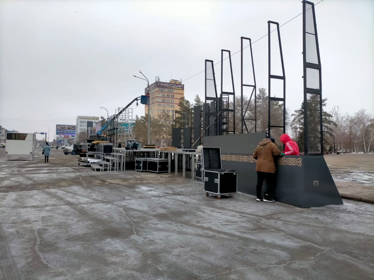 В Павлодаре сегодня перекрыли центральную площадь и приступили к монтажу праздничных юрт, а также главной сцены, на которой должны выступить Кайрат Нуртас и Роза Рымбаева. Заметить здесь можно и немало работников в "оранжевых" жилетах, которые активно вычищают все тротуары от наледи, передает корреспондент BaigeNews.kz.