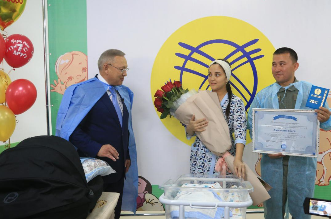"Поздравляю вас с рождением малыша. Пусть он станет гордостью не только вашей семьи, но и всей страны, будучи свидетелем дальнейшего успешного развития современного и будущего Казахстана. Позвольте вручить подарки от имени президента страны. Желаю крепкого здоровья малышу и его родителям", - сказал Бейбит Исабаев, вручив свидетельство о рождении особого образца и беби-бокс от имени главы государства, цветы и коляску.