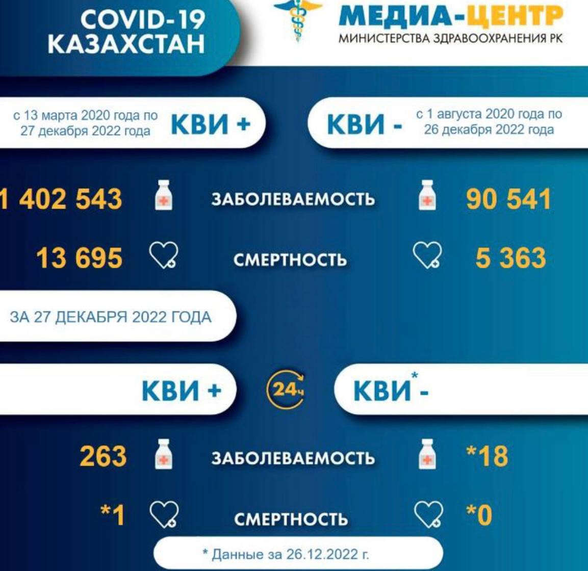 По информации Минздрава, за сутки в Казахстане коронавирусной инфекцией заразились 263 человека, один пациент скончался, передаёт BaigeNews.kz