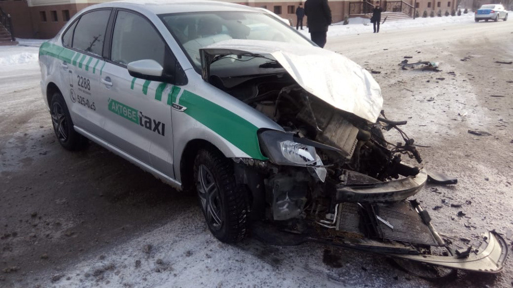 Авария случилась сегодня, 15 февраля, в 09:40 на перекрестке улиц Жубановой и Сеитова. По информации полицейских, принадлежащий службе такси автомобиль марки Volkswagen Polo столкнулся с автобусом "ПАЗ", следовавшим по маршруту № 37.