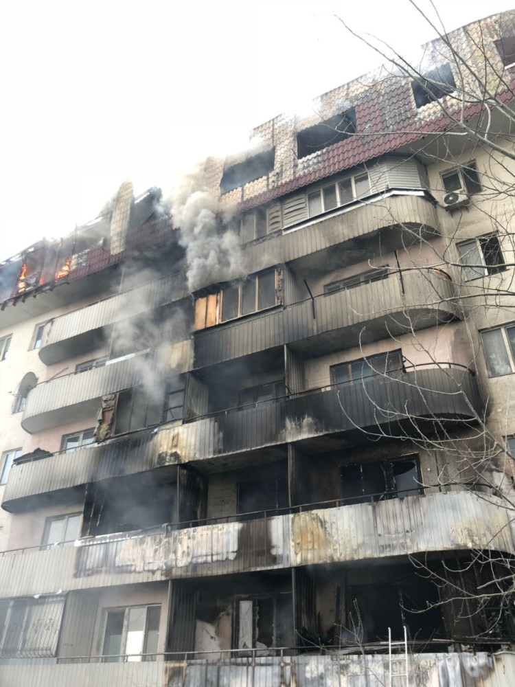 В Алматы горели балконы первого и второго этажей пятиэтажного жилого дома с мансардой, сообщает корреспондент BNews.kz.