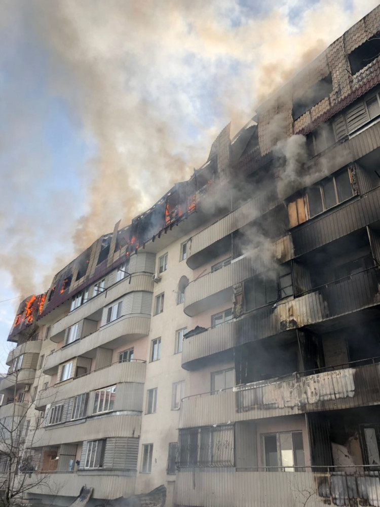 На момент прибытия пожарных, огнём были охвачены фасад здания с первого по пятый этаж. Предварительная площадь пожара составила тысячу кв м.