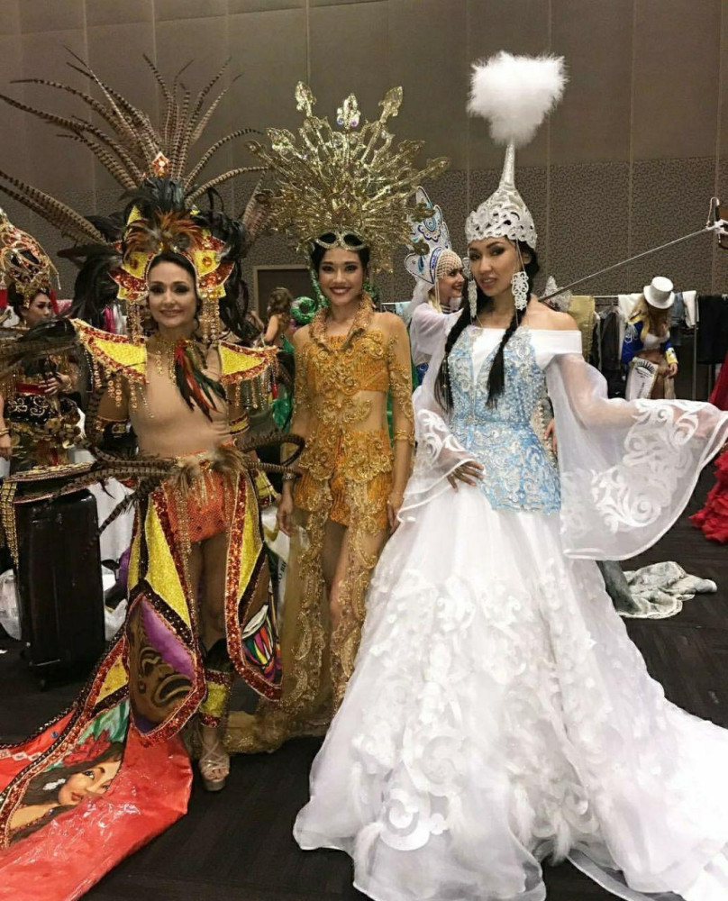 Чуть позже Камиля Канапьянова показала свой наряд для конкурса национальных костюмов.