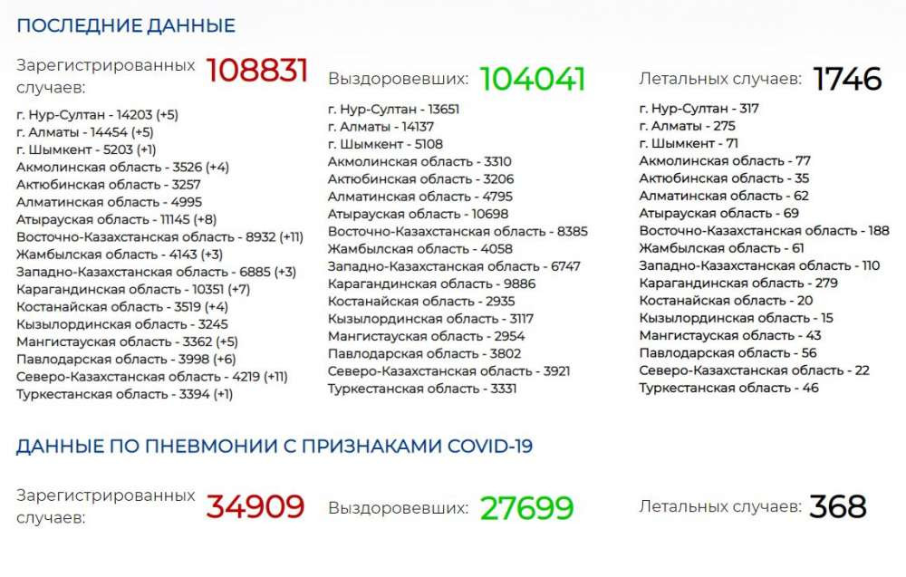 В нашей же стране, по данным сайта coronavirus2020.kz, ситуация с КВИ следующая: