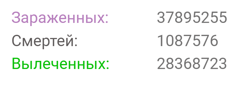 coronavirus-monitor.ru, в мире более миллиона человек умерли от КВИ.