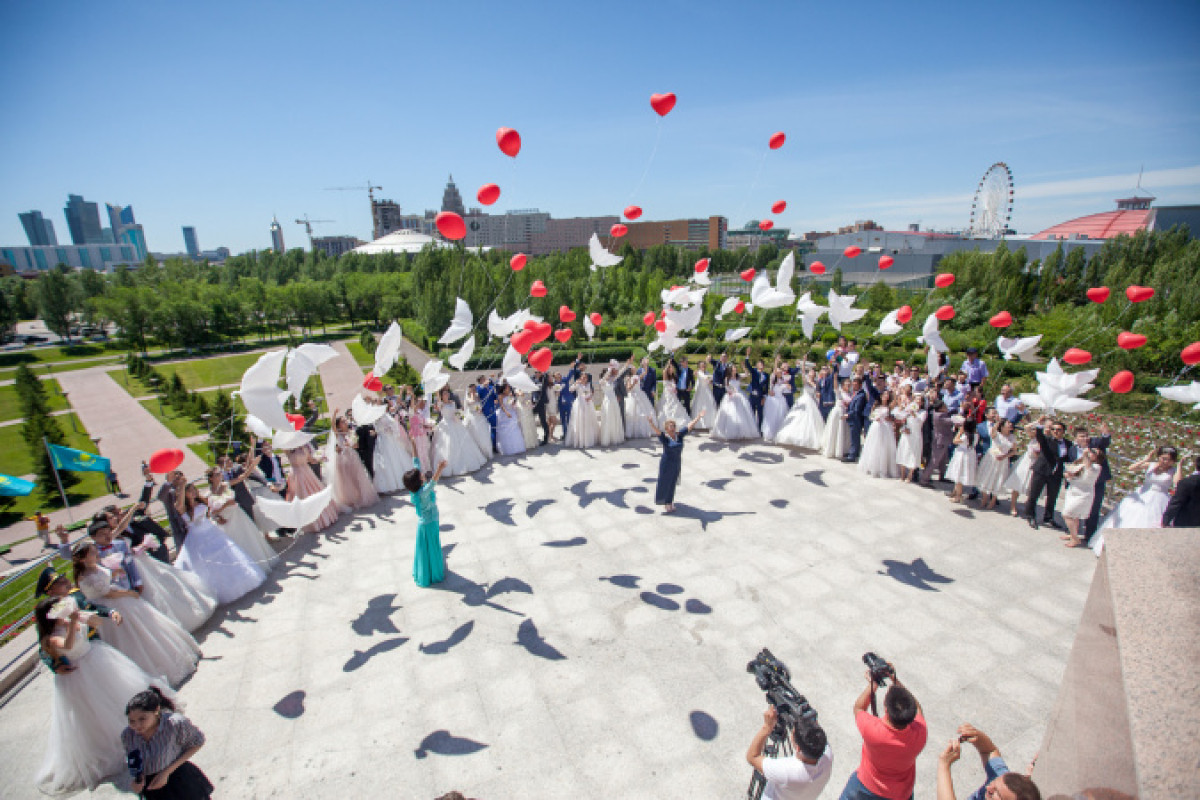 Торжественная церемония бракосочетания, посвященная празднованию дня города Нур-Султана, проводится в столице с 2007 года.