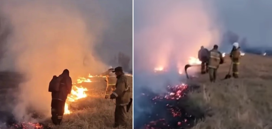 9 октября в 15-41 в селе Жанузак произошло загорание сухой травы, площадь устанавливается.