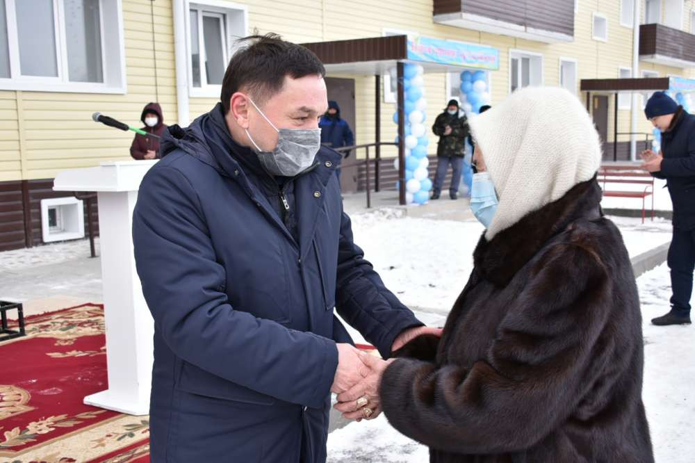 Поздравив новоселов, руководитель области отметил, что одним из основных направлении политики страны является обеспечение каждой казахстанской семьи собственной квартирой, домом.