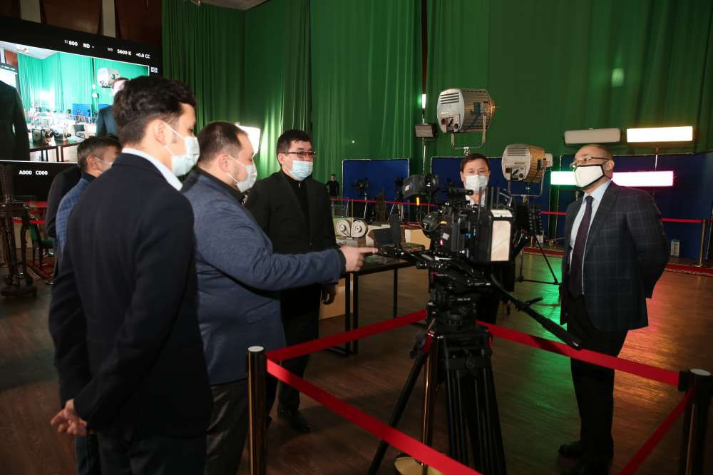 Министр культуры и спорта РК Даурен Абаев в ходе рабочего визита в Алматы посетил киностудию "Казахфильм" имени Шакена Айманова, передает