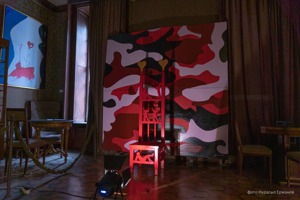 На первом этаже, где нас встретила госпожа Гонашвили расположен также и некий музей, где на тот момент проходила выставка с причудливыми картинами. Среди них, сидя за большим столом мы и записали наш разговор.