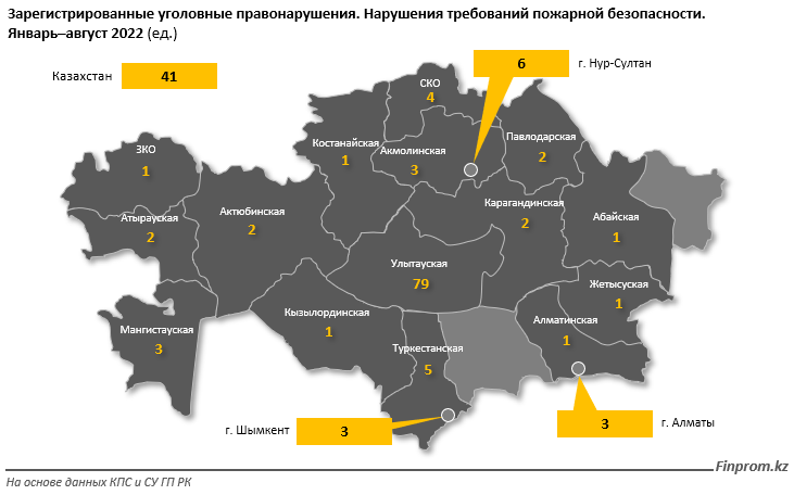 Однако за январь–август текущего года в стране зарегистрировали 41 уголовное правонарушение, связанное с нарушением требований пожарной безопасности, — на 32,8% меньше, чем за аналогичный период 2021-го.