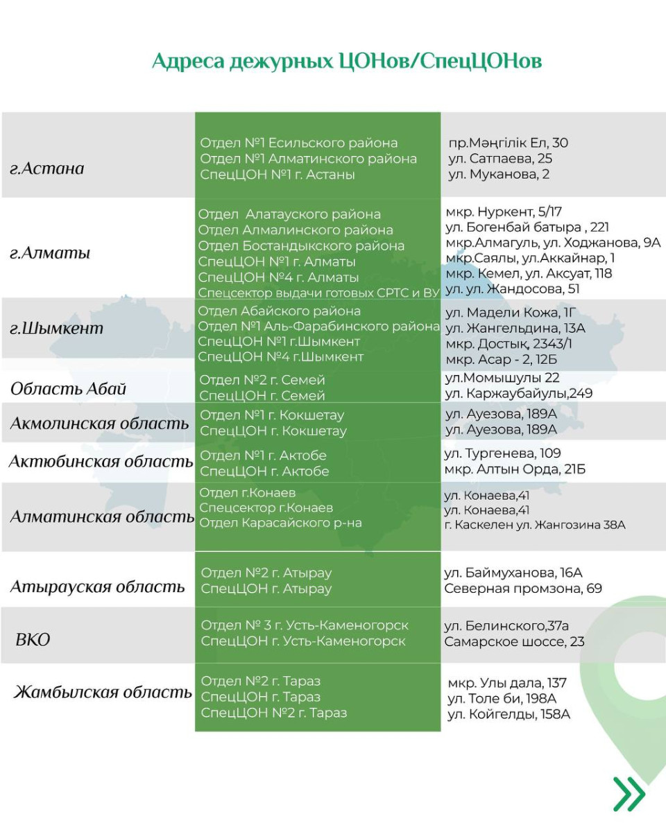 В Казахстане с 1 декабря изменились адреса дежурных центров обслуживания населения в Астане, Алматы, Шымкенте и ряде областей, передает BAQ.KZ со ссылкой на пресс-службу госкорпорации "Правительство для граждан".