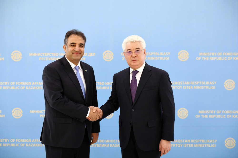 В АСтане состоялась встреча министра иностранных дел Бейбута Атамкулова с Послом Исламской Республики Афганистан в Республике Казахстан Мохаммад Фархадом Азими. Стороны обсудили текущее состояние и дальнейшие перспективы казахстанско-афганского сотрудничества в политической, торгово-экономической и гуманитарной сферах, передаёт BNews.kz со ссылкой на пресс-службу внешнеполитического ведомтсва.