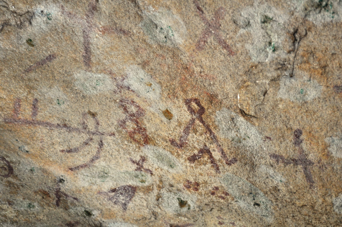Рисунки нанесены красной охрой, хотя есть версии, что это кровь, но одно известно, подобных цветов в наскальном творчестве в регионе больше не встретишь.