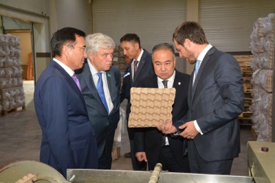 В завершение поездки аким области посетил завод ТОО «Экопак Астана», который выпускает лотки для яиц путем переработки макулатуры. «Производство было запущено в январе 2017 года. С этого времени мы ежемесячно выходим на полную производственную мощность, выпуская в месяц 2,5 млн штук лотков. 50% лотков поставляем на свои птицефабрики, остальные 50% реализуем на территории области и южного региона. На предприятии работают 22 человека, производительность на одного человека составляет 40 тысяч долларов в год. Стоимость проекта — 440 млн тенге», — сообщил финансовый директор предприятия Наурызбаев.
