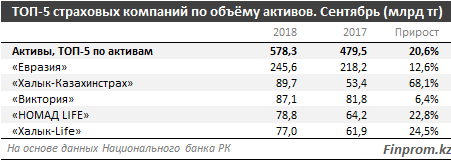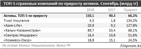 Лидером по приросту активов в указанном периоде оказалась компания Trust Insurance, которая увеличила их объём более чем в два раза (4,3 млрд тенге).
