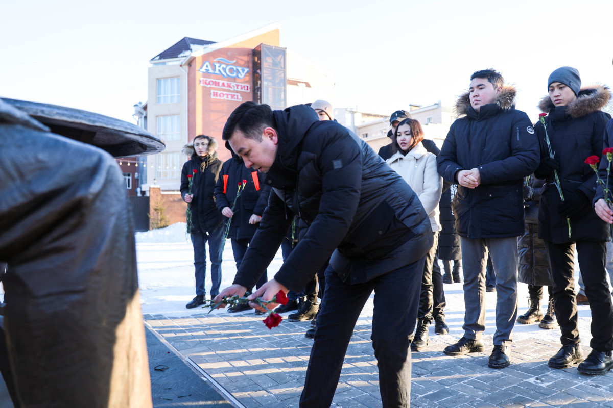 Молодые люди минутой молчания почтили память Алихана Бокейхана, Ахмета Байтурсынулы и Миржакыпа Дулатулы.