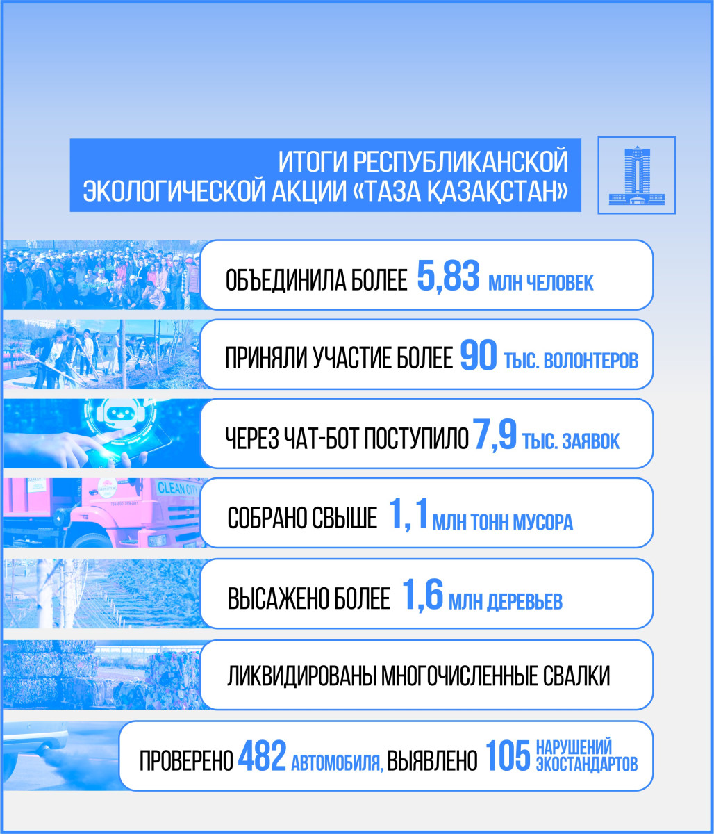 По инициативе Главы государства Касым-Жомарта Токаева с апреля текущего года стартовала республиканская экологическая акция "Таза Қазақстан". Мероприятие направлено на улучшение экологической ситуации в стране, повышение уровня экологической культуры населения и привлечение граждан к вопросам защиты окружающей среды. Акция охватила все регионы страны, заложив основу для устойчивого экологического будущего, передаёт BaigeNews.kz со ссылкой на пресс-службу главы правительства.