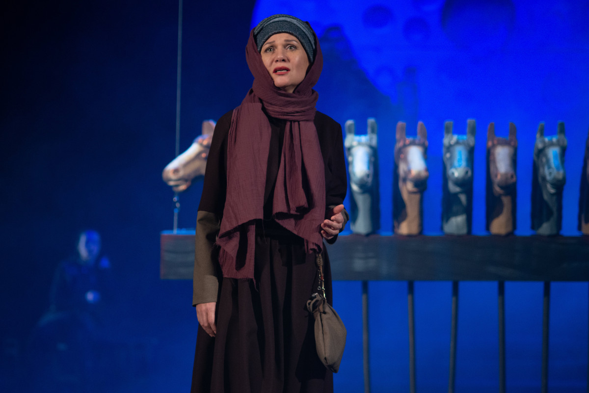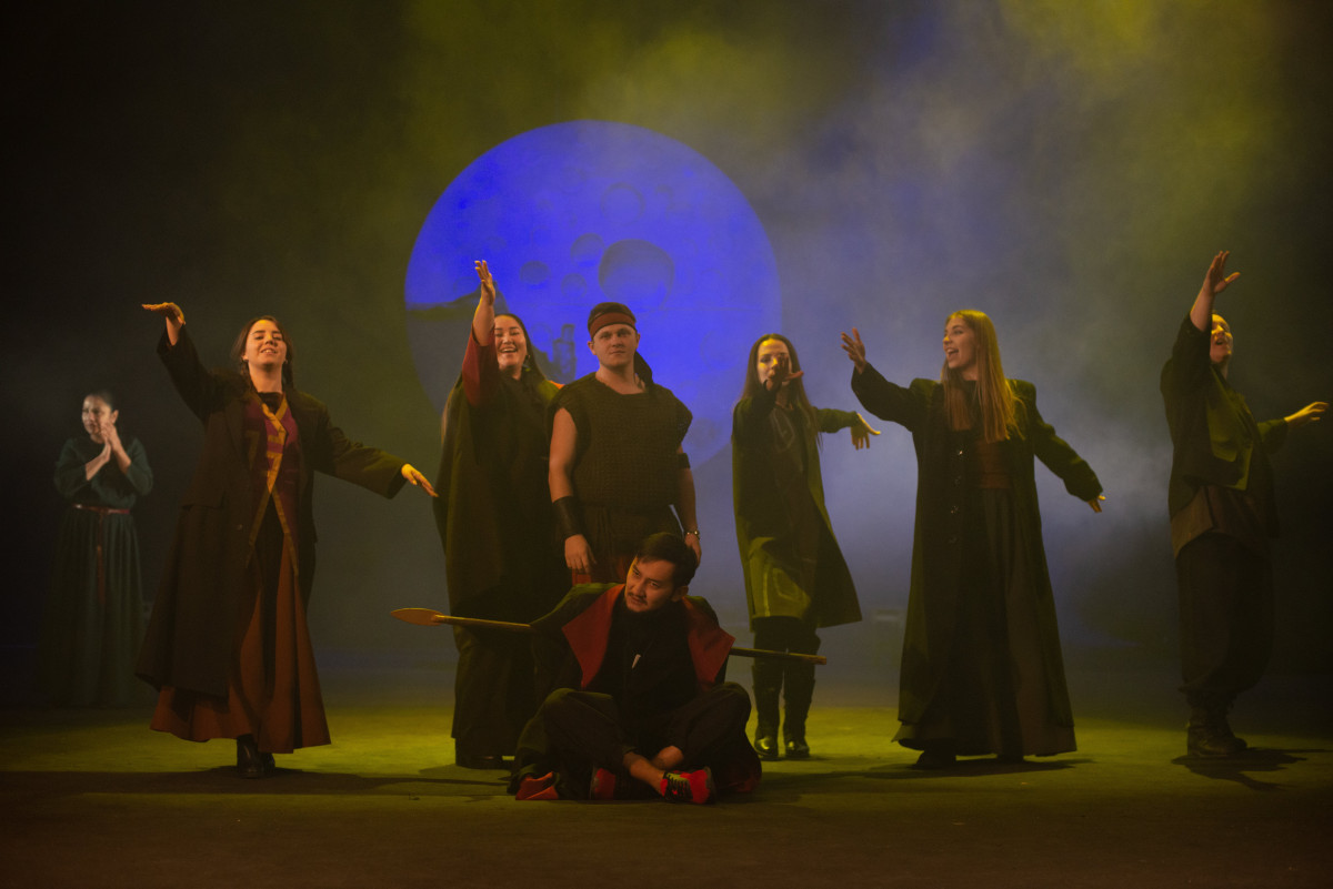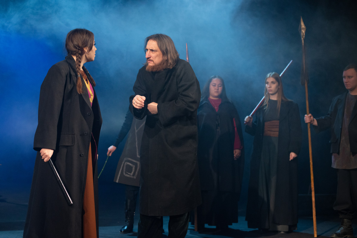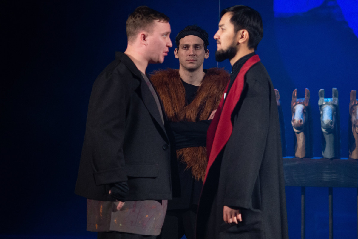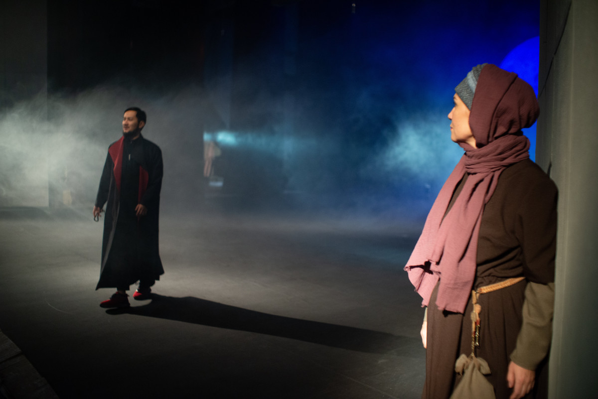 "Премьера состоялась осенью прошлого года. Особенность постановки и её сложность заключалась в том, что спектакль нужно было поставить на сцене русского театра, а пьеса национальная, казахская. И ее нужно было адаптировать. Нужно было найти адекватное сценическое решение, решение в костюмах, музыкальное решение. И так, чтобы не копировать, не повторять, а сделать историю вне времени. Мне кажется, благодаря художнику и композитору нам удалось это сделать! — рассказывает режиссер Баатр Колаев.