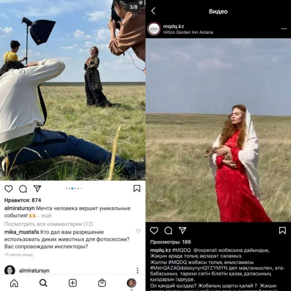 "Видимо, нас не так поняли. Это было согласовано в рамках пресс-тура. Но цель данной фотографии в том, что я запускаю свою фотовыставку "Мен қазақ даласының қызымын". В этом проекте будут участвовать девушки разных национальностей, проживающие в Казахстане. Они расскажут историю своих предков, и у каждой участницы будут элементы казахской степи. Мы как раз для старта выбрали Альмиру Турсын, где она будет с сайгачонком. Это острая тема, которая нас беспокоит. При этом сайгаки тесно связаны с нашей бытовой жизнью. Поэтому мы и решили его запечатлеть на фотографиях.