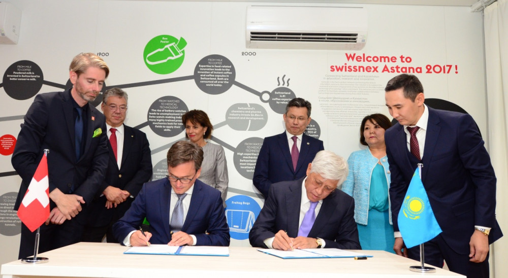 В ходе подписания, состоявшегося в Астане с участием министра финансов Бахыта Султанова, Чрезвычайного и Полномочного посла Республики Казахстан в Швейцарии Жанар Айтжановой, президента Швейцарской Конфедерации Дориса Лойдхарда и других высокопоставленных лиц, аким Алматинской области Амандык Баталов вкратце рассказал об инвестиционных возможностях края Жетысу.