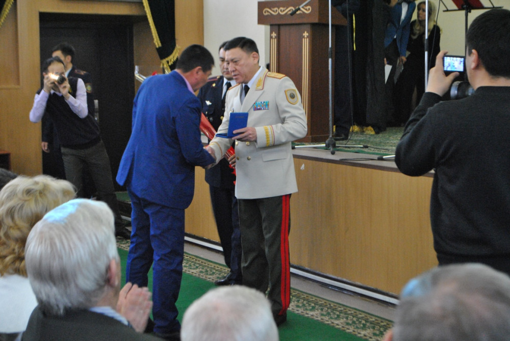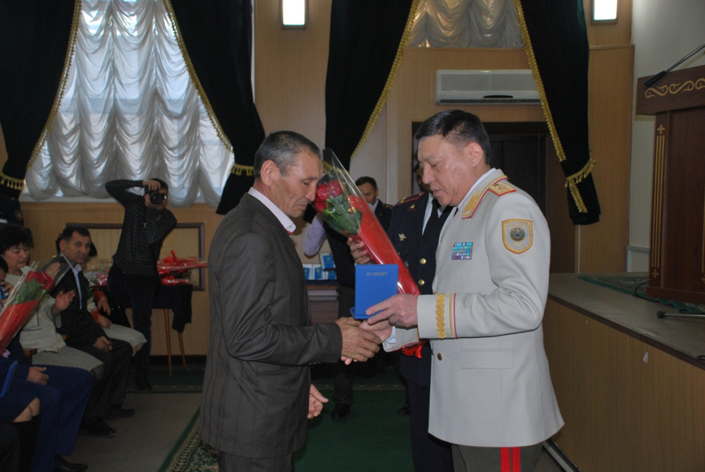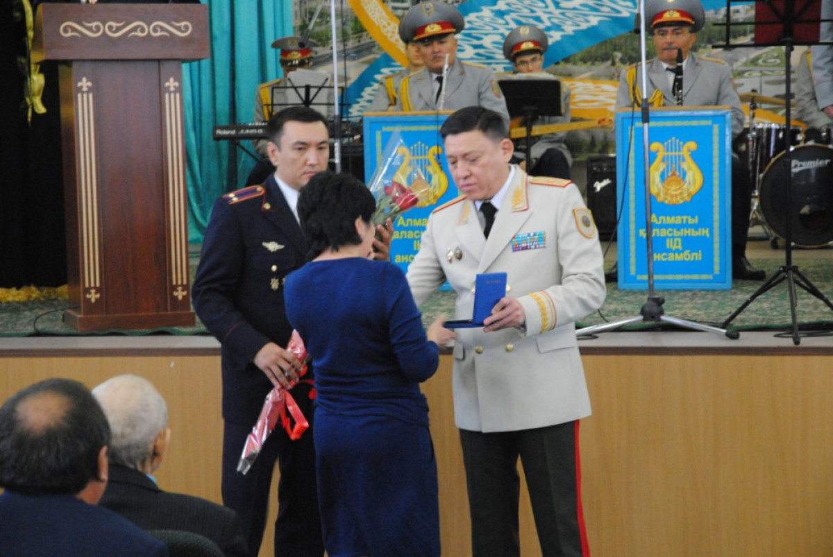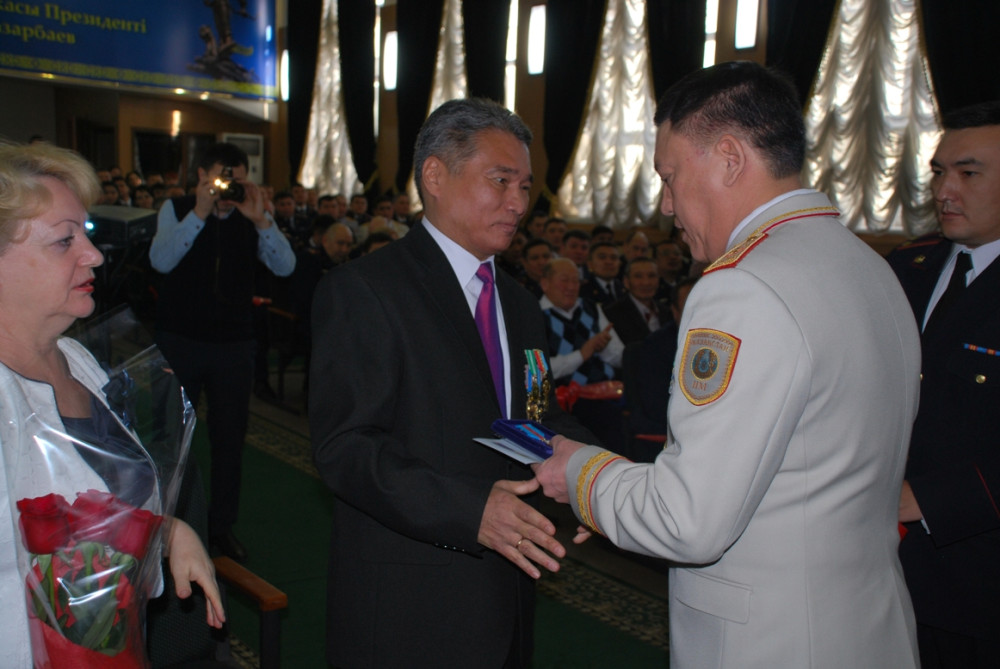 <p>В церемонии награждения, приуроченной к 25-летию независимости Республики Казахстан, приняли участие семьи погибших сотрудников полиции. От имени Главы государства Н.А. Назарбаева ордена и медали родным погибших при исполнении служебных обязанностей стражей порядка, а также действующим полицейским Алматы в торжественной обстановке вручил заместитель министра внутренних дел РК генерал-майор полиции Берик Бисенкулов, передает <a href="http://BNews.kz" target="_blank">BNews.kz</a>.</p>