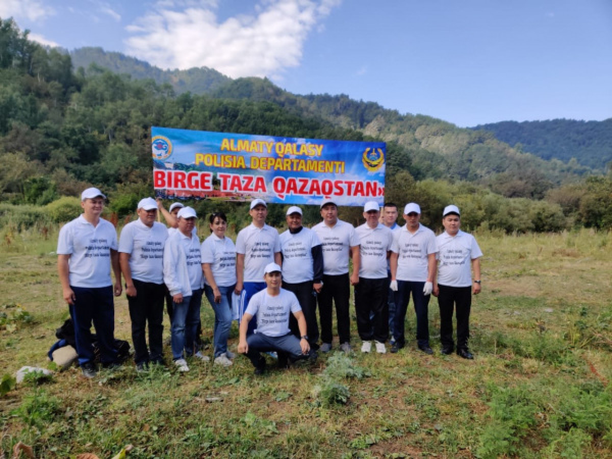 Около 120 полицейских Алматы поддержали экологический челлендж вблизи катка "Медеу", сообщает BNews.kz.
