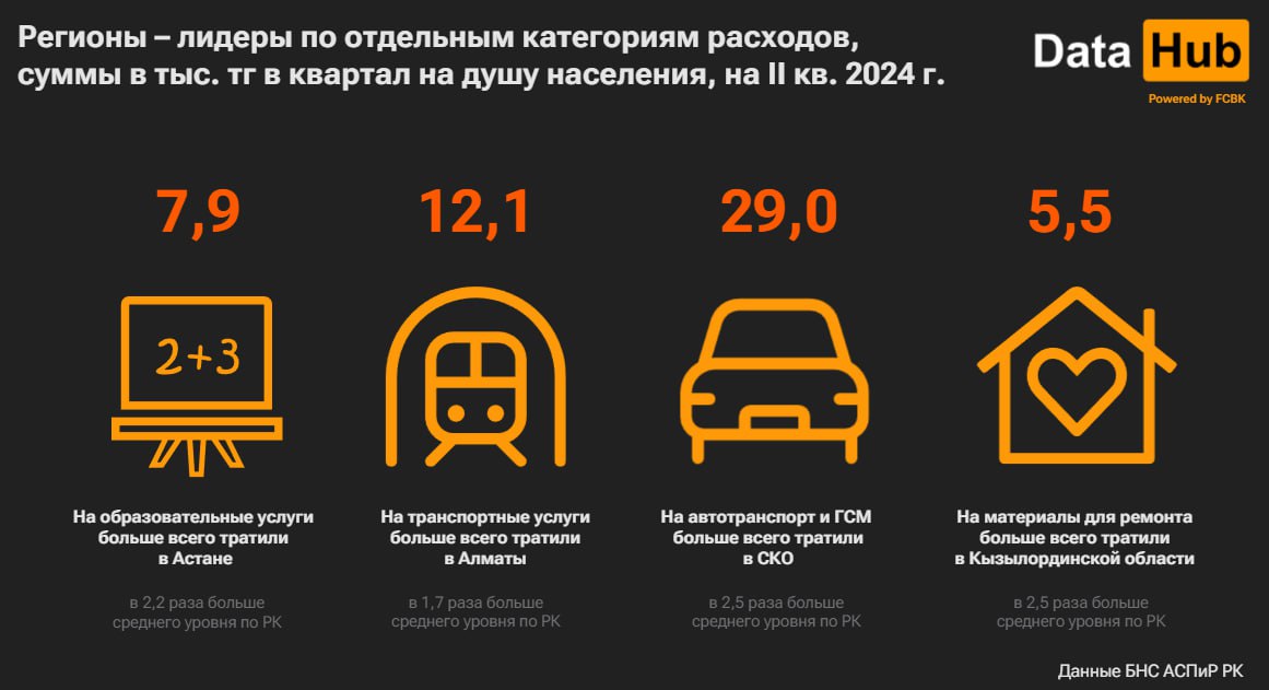 Средние траты алматинцев на развлечения в два раза обошли общий показатель по Казахстану, передаёт BaigeNews.kz со ссылкой на аналитический Telegram-канал DATA HUB.