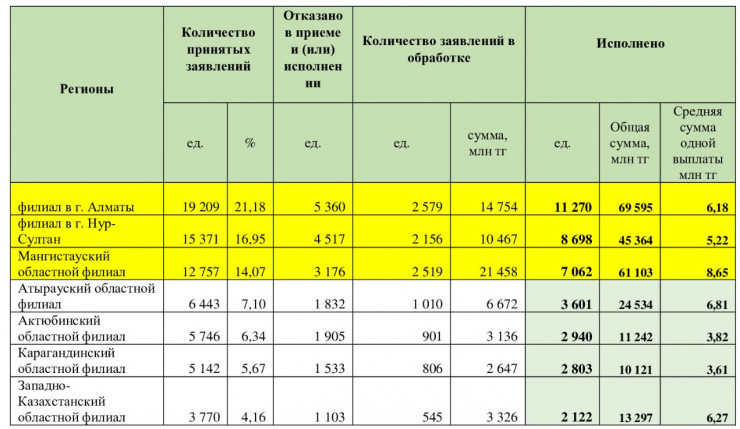 В Мангистауской области принято 12 757 заявлений на получение ЕПВ (14 процентов). 7062 заявления исполнены – более 61 миллиарда тенге переведено вкладчикам на улучшение жилищных условий. Средняя сумма выплат в области составила 8,65 миллиарда тенге. Ждут исполнения еще 2519 заявлений на общую сумму почти 21,5 миллиарда тенге.