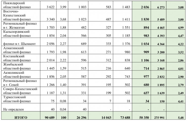 В разрезе регионов Казахстана получение средств из ЕНПФ на улучшение жилищных условий выглядит следующим образом: