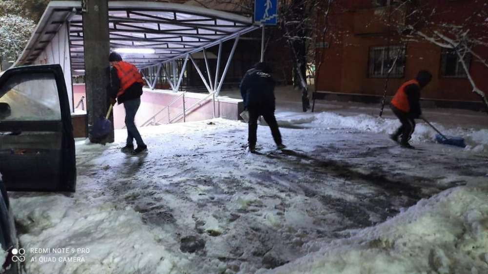 В районных акиматах организовано круглосуточное дежурство для контроля за уборкой снега.