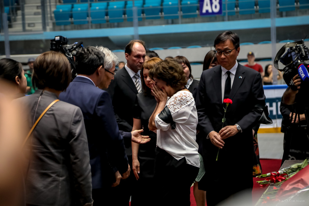 Фото: Бауыржан Жуасбаев"Словами нельзя передать всю печаль, которую мы сейчас испытываем. Выражаем искренние соболезнования родным и близким Дениса Тена, который был не только выдающимся талантом, но и добродушным человеком, который всегда помогал и заботился о близких. Это огромная трагедия как для его родины - Казахстана, так и для корейцев Казахстана. Денис Тен является потомком выдающегося борца страны против японских колонизаторов, генерала Мин Гын Хо. Мы всегда будем помнить героя своей страны, близкого друга Республики Корея Дениса Тена", - сказал посол Республики Корея в РК Ким Дэ Сик.