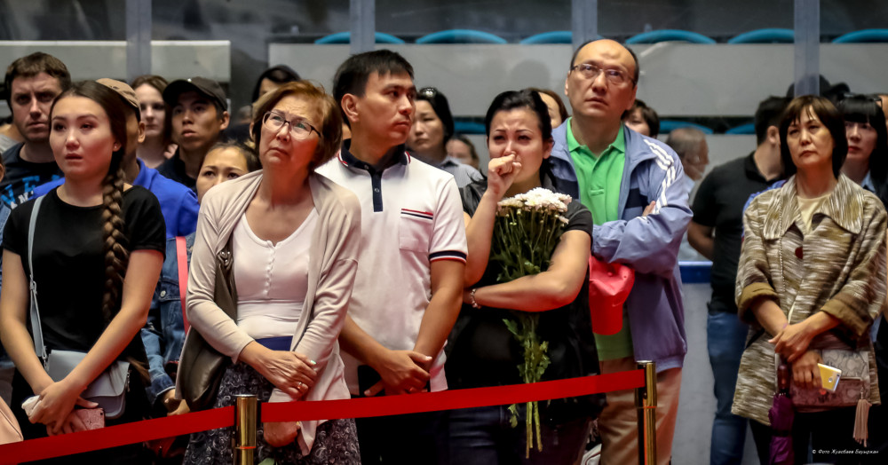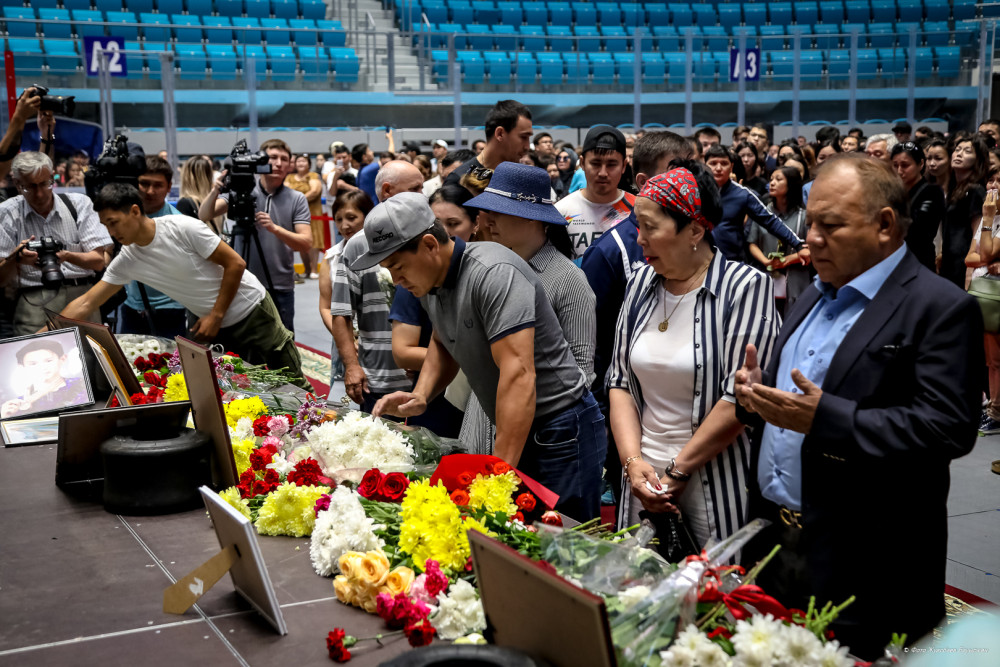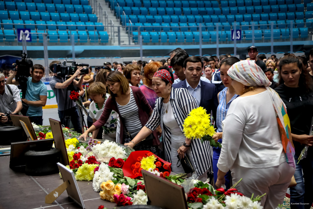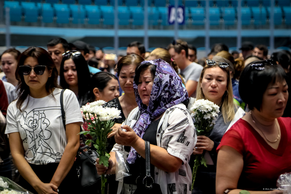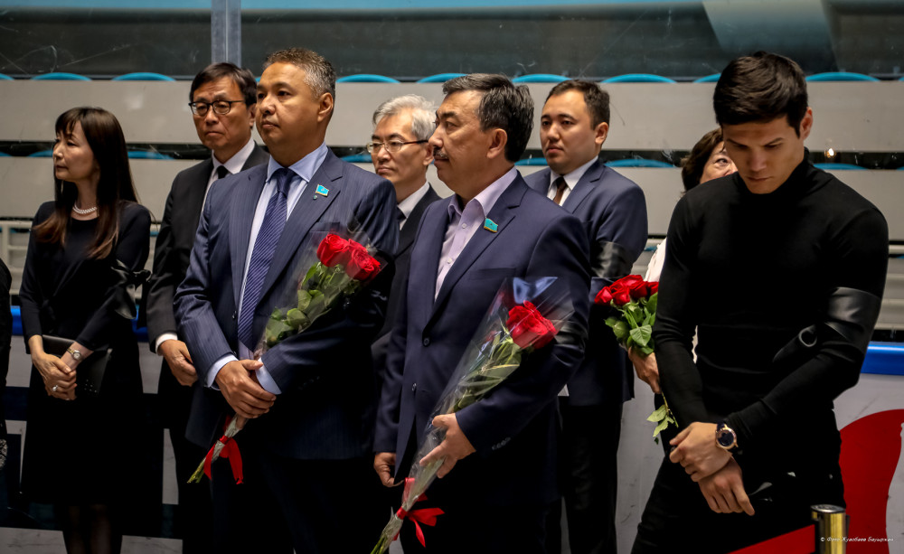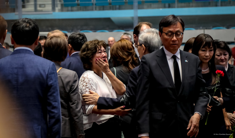 Фото: Бауыржан ЖуасбаевВ траурной церемонии приняли участие именитые спортсмены Данияр Елеусинов, Бейрут Шуменов, Динара Садуакасова, Екатерина Айдова, Денис Кузин, депутаты Мажилиса РК, представители акимата Астаны, министр информации и коммуникаций Даурен Абаев, послы Японии и Кореи в Казахстане и другие представители государственных органов.