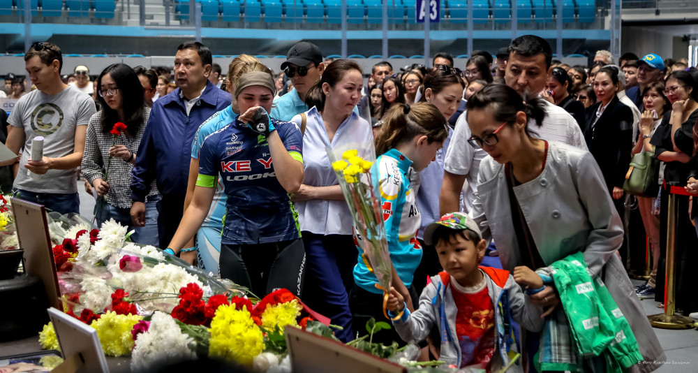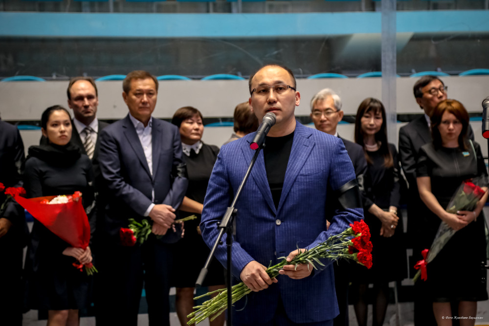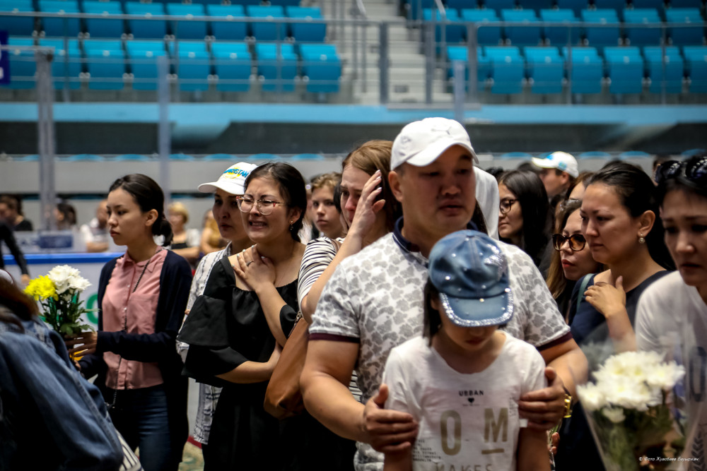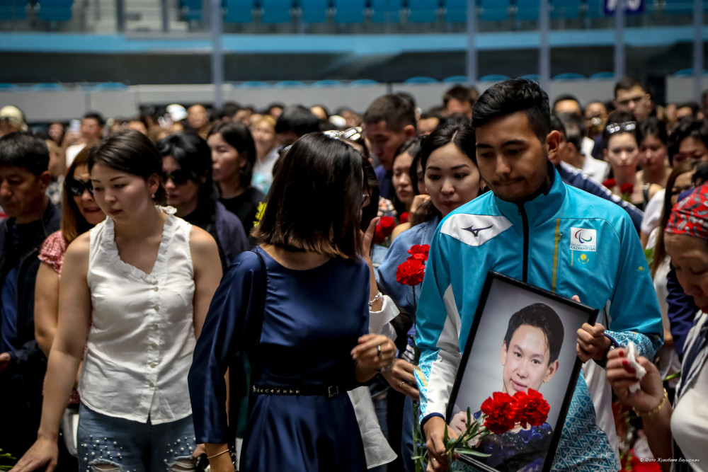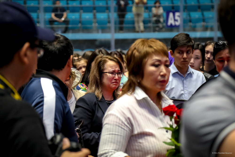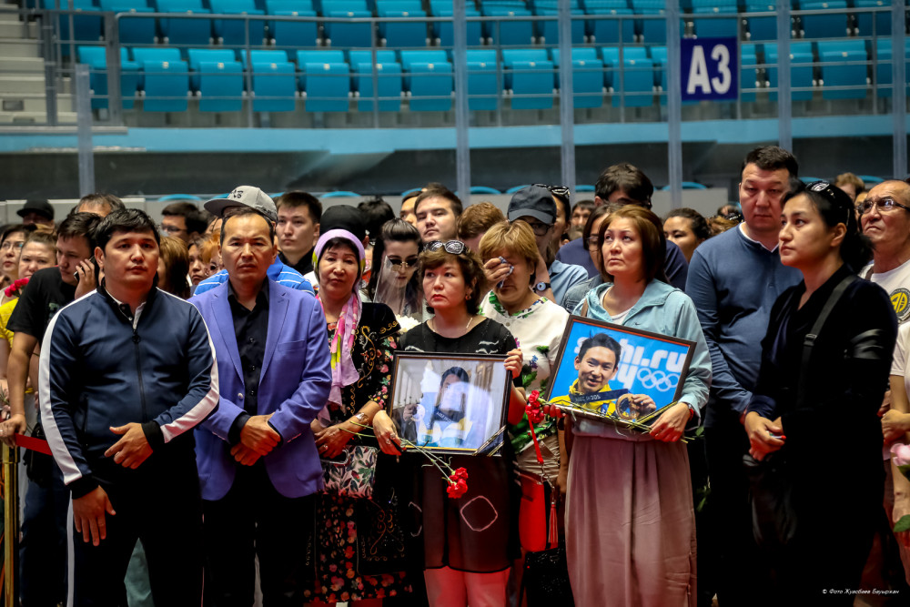 Фото: Бауыржан ЖуасбаевВ траурной церемонии приняли участие именитые спортсмены Данияр Елеусинов, Бейрут Шуменов, Динара Садуакасова, Екатерина Айдова, Денис Кузин, депутаты Мажилиса РК, представители акимата Астаны, министр информации и коммуникаций Даурен Абаев, послы Японии и Кореи в Казахстане и другие представители государственных органов.