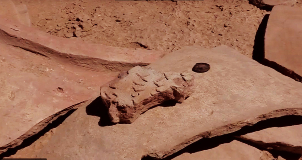 Само городище относится к арысской археологической культуре и характеризует государственность Кангюй – одно из первых государственных объединений, зарегистрированных на территории Южного Казахстана после распада сакского союза племен. За многие годы раскопок историки обнаружили здесь немало уникальных находок, самыми ценными из которых являются таблицы из обожженного кирпича с образцами древней письменности. Найденный в нынешнем году фрагмент – уже 17-й по счету. Он включает в себя 14 знаков, размещенных на четырех строчках.
