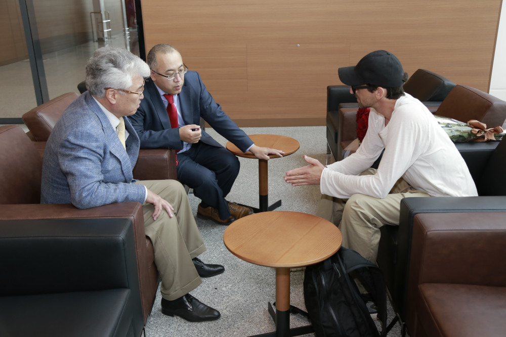 Оскароносного актера в VIP-терминале столичного аэропорта встретил министр культуры и спорта РК Арыстанбек Мухамедиулы.