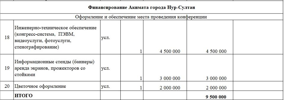Она также приложила скрины проекта сметы на проведение этой конференции. На тот момент туда не были включены все расходы по аренде зала, а также не указаны затраты международных организаций.