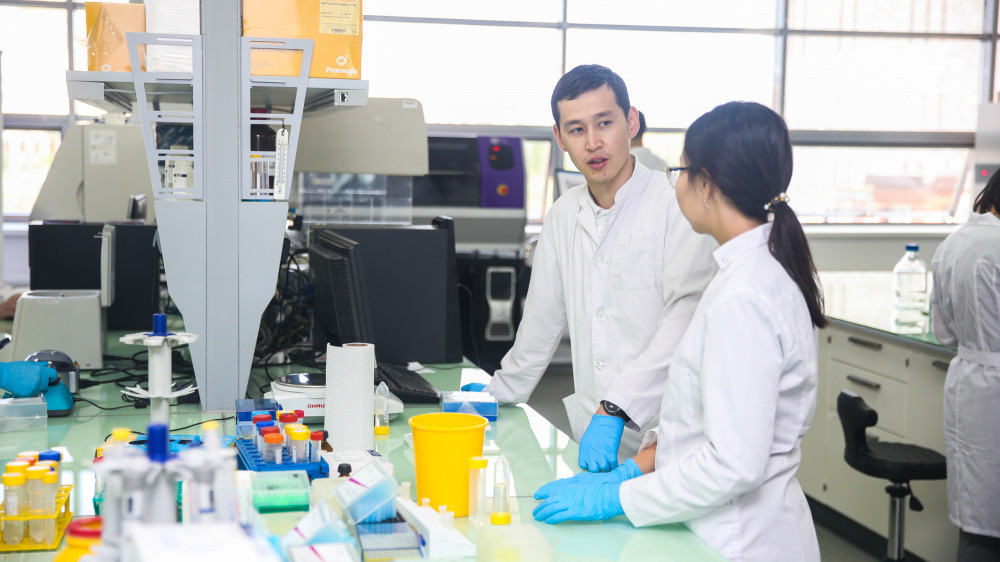 В ходе посещения заведующие лабораториями стволовых клеток В. Огай, коллективного пользования — Е. Жолдыбаева, генетической инженерии растений — Ш. Манабаева, генетики человека — М. Жабагин презентовали результаты проведенных исследований в области геномики, генетики человека и его патогенов, генетики домашних животных, а также в новейшей области науки — геномном редактировании. Среди них — клеточные препараты для лечения ожогов, новые сорта пшеницы и картофеля, вакцины от болезней, препараты, лекарственные и лечебно-профилактических препараты.