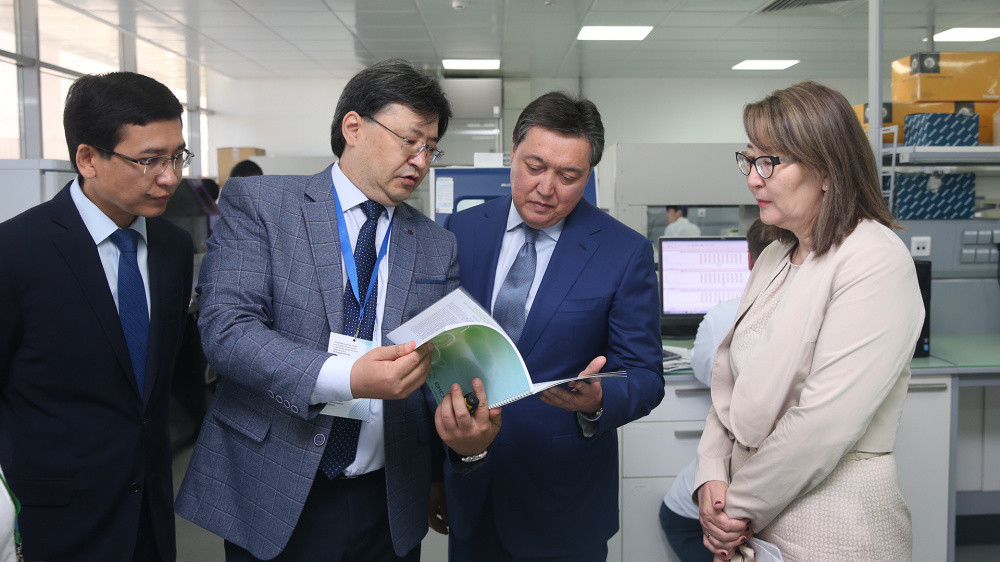 Глава Правительства РК осмотрел лабораторный блок, где были представлены перспективные разработки центра в области медицинской, сельскохозяйственной, экологической биотехнологий, пищевой и перерабатывающей промышленности, а также презентованы возможности их дальнейшего внедрения в экономику страны, передает сайт Премьер-Министра РК.