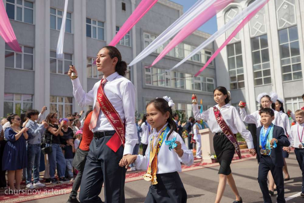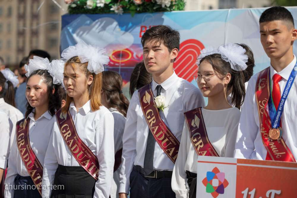 "Дорогие выпускники, уважаемые родители, уважаемые коллеги. Сегодня замечательный день для трёх миллионов 600 тысяч наших школьников. Звенит последний звонок. Этот день особенно значим для выпускников наших школ. Сегодня 171 тысяча выпускников школ прощается со своей школой. Поэтому я хотел бы, прежде всего, поздравить наших выпускников. Я, сейчас стоя здесь, вспоминаю свои чувства, ощущения, когда я также заканчивал школу. Это эмоции, когда знаешь, что прощаешься со школой, начинается новый этап вашей жизни. Это надежды, переживания, неопределённость. И когда оканчиваешь школу, тебе кажется, что это на самом деле очень большая проблема. Но с высоты своего опыта должен сказать, что и ЕНТ, и школьные экзамены, они все являются на самом деле малозначимыми и очень простыми экзаменами. И в дальнейшем в жизни эти экзамены будут казаться очень лёгкими этапами вашей жизни", — сказал глава МОН.