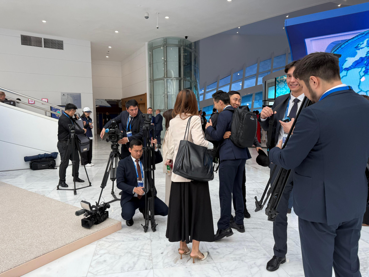 Ещё не пробило девяти, а на территории форума уже многолюдно: делегаты проходят регистрацию, сотрудники проверяют звук, операторы раскладывают камеры. Делегаты общаются, журналисты берут интервью. Международный форум Астана стартует с минуты на минуту, вот, что увидел корреспондент BAQ.KZ.