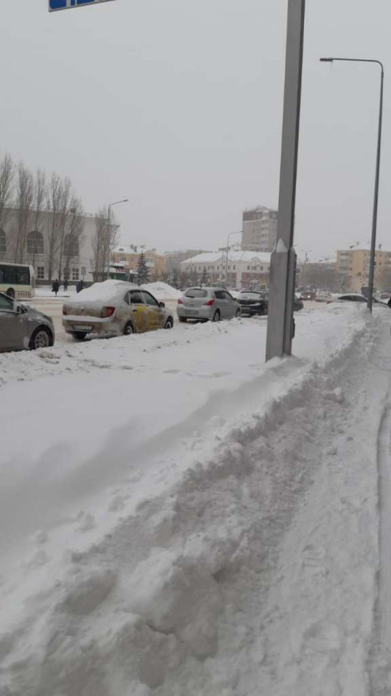 Заполнены снегом и тротуары, в том числе на правом берегу столицы.